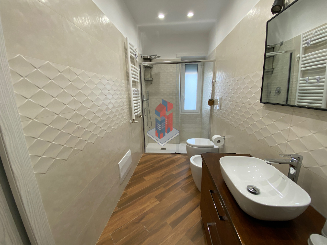 In parco custodito appartamento neo ristrutturato di ampia quadratura composto da ingresso/corridoio, salone, cucina abitabile, 2 camere da letto matrimoniali e doppi servizi.